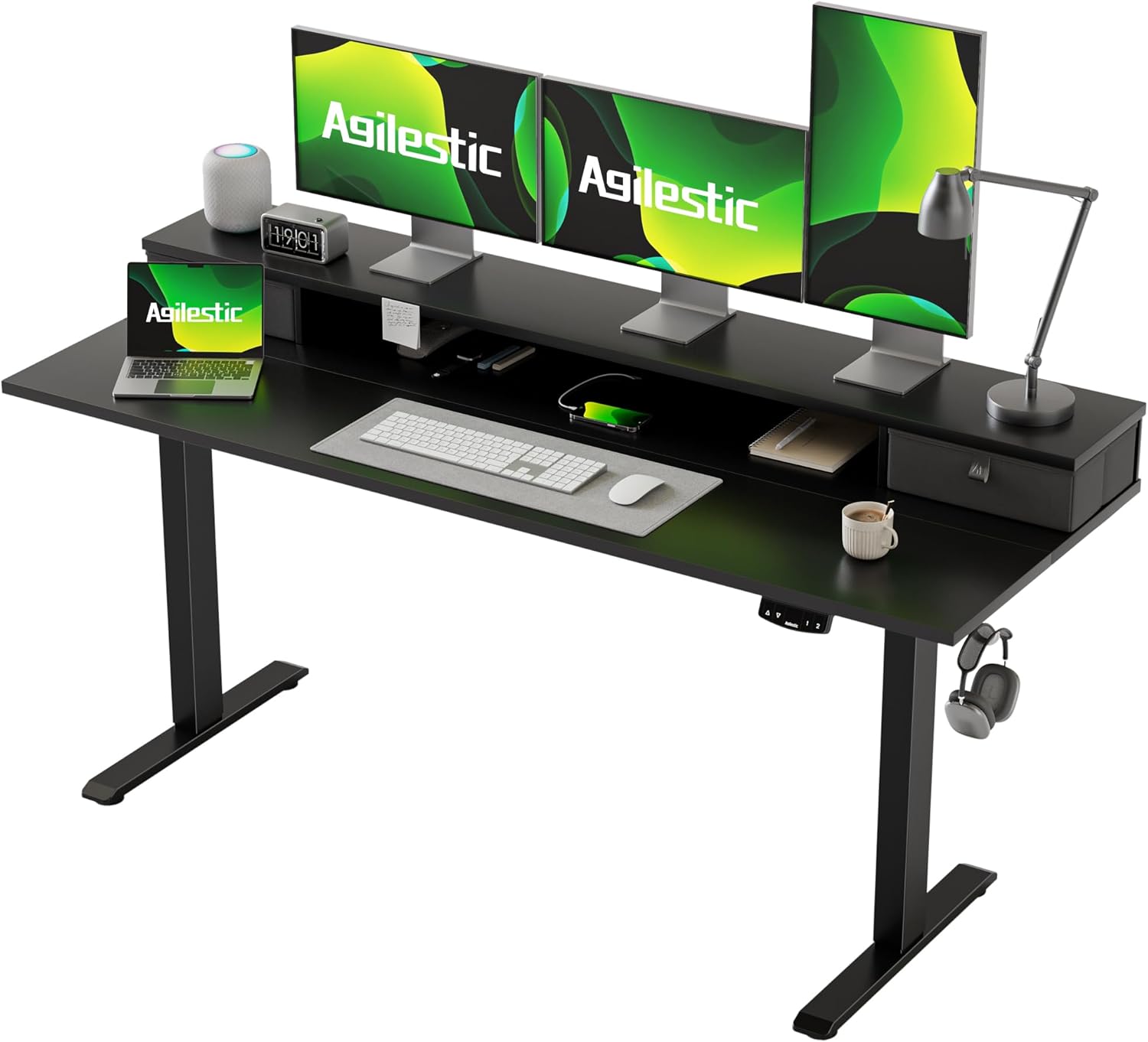 Elektriskā pacelšanas sistēma: Agilestic stāvgaldam ir uzlabots motors, kas atbalsta augstuma regulēšanu no 72 cm līdz 116 cm ar zemu trokšņa līmeni (zem 55 dB) darbības laikā. Vēlamo augstumu var regulēt individuāli un saglabāt, izmantojot 2 atmiņas pogas.