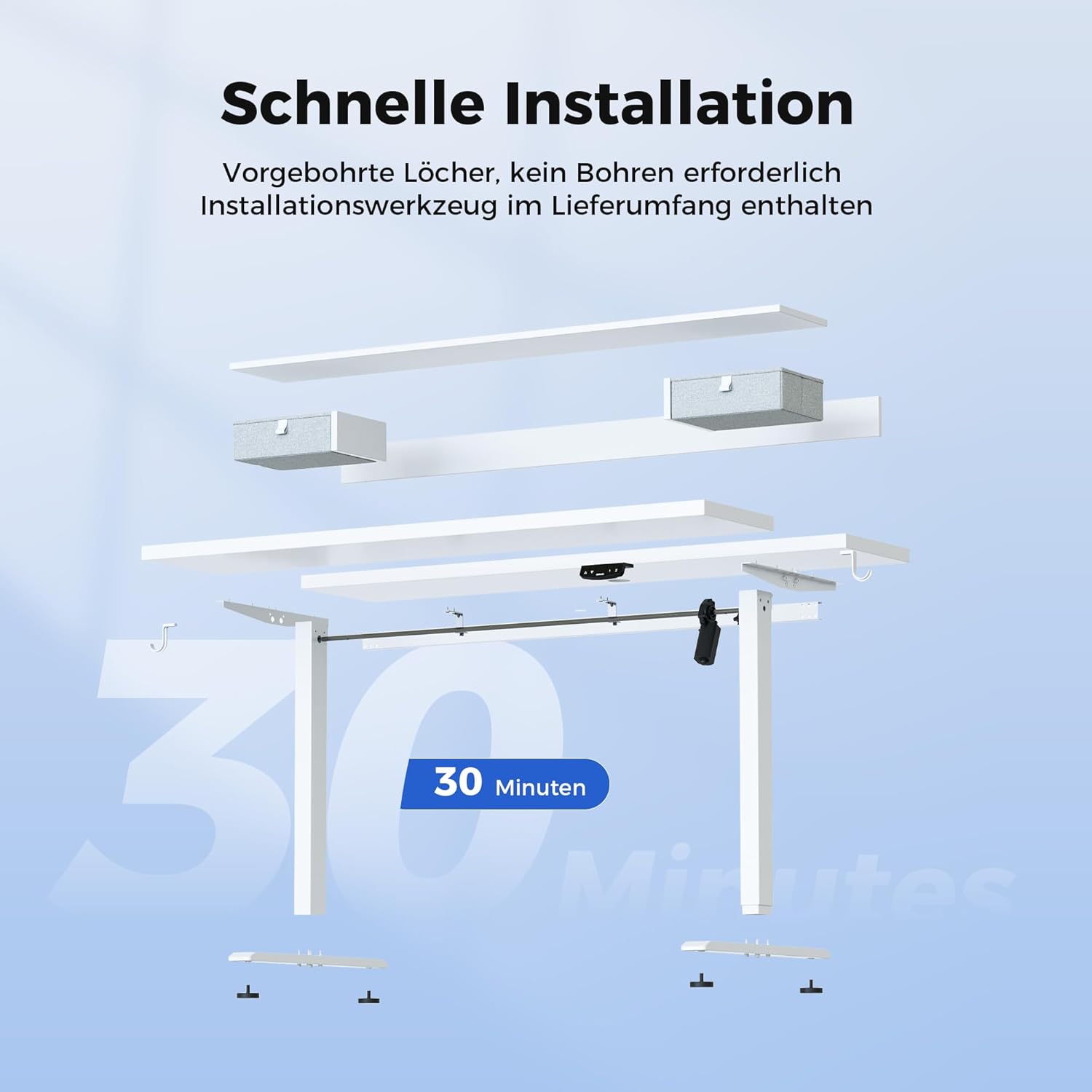 Viegli saliekams: mūsu elektriskā stāvgalda uzstādīšanas process ir ļoti vienkāršs un sastāv no dažiem soļiem. Iepakojumā ir iekļautas uzstādīšanas instrukcijas un montāžas instrumenti, kā arī pieejams uzstādīšanas video. Ja rodas kādi jautājumi vai problēmas ar garantiju montāžas vai lietošanas laikā, lūdzu, sazinieties ar mums.