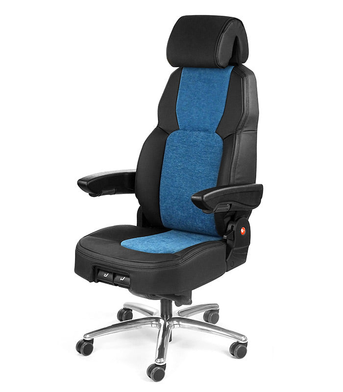 UnitedSeats C8 biroja krēsls – ādas apdare ar melnu/zilu audumu | Preces numurs: US.291765