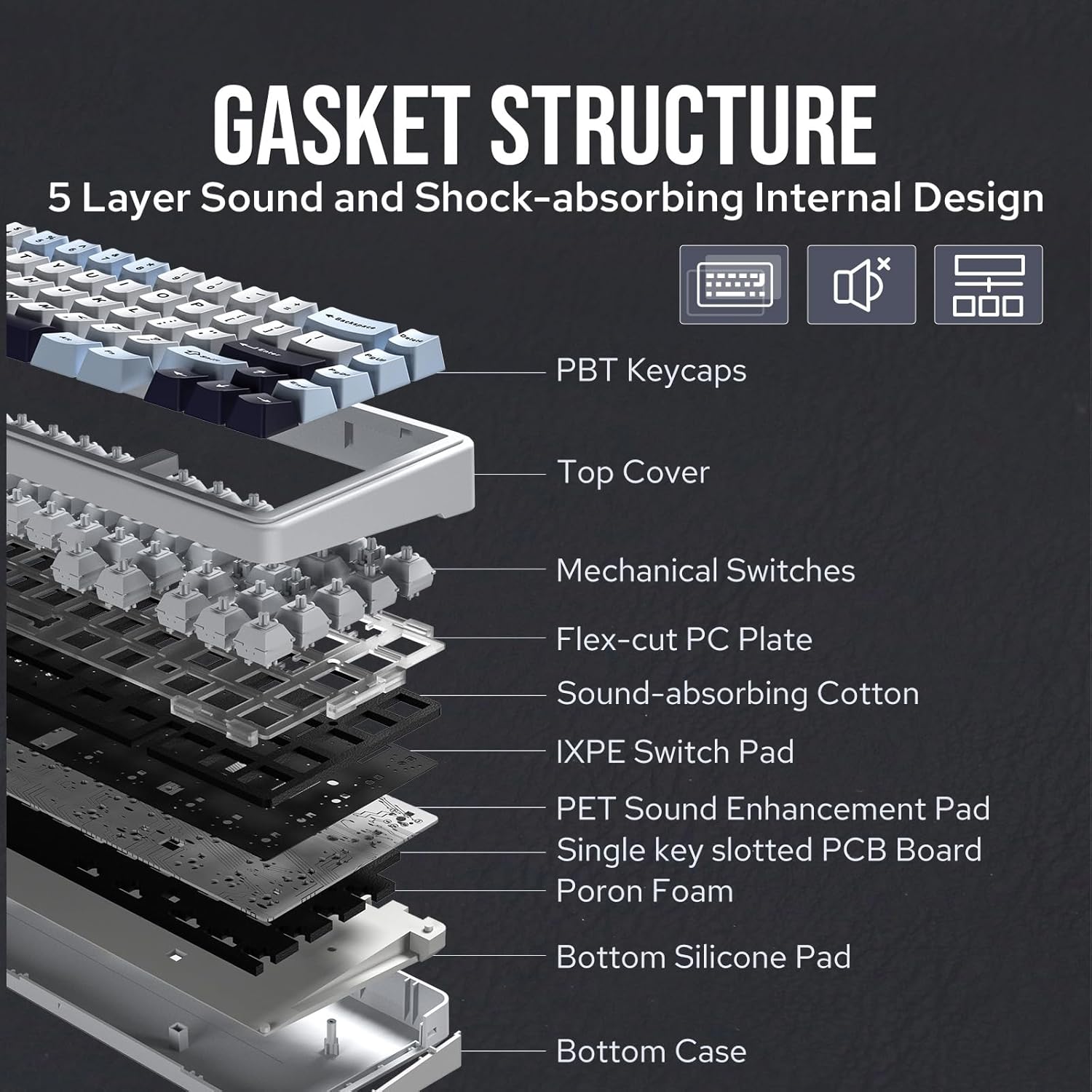 Elastīga, taustāma un stabila: Īpaši mīksta un elastīga PC plāksne mīkstai un taustāmai rakstīšanai. Precīzi noregulēti un ieeļļoti stabilizatori, lai novērstu grabēšanas troksni vai nevēlamu metāla troksni.