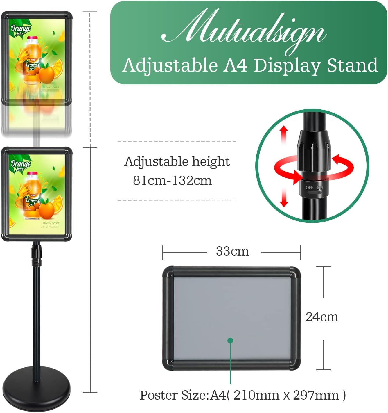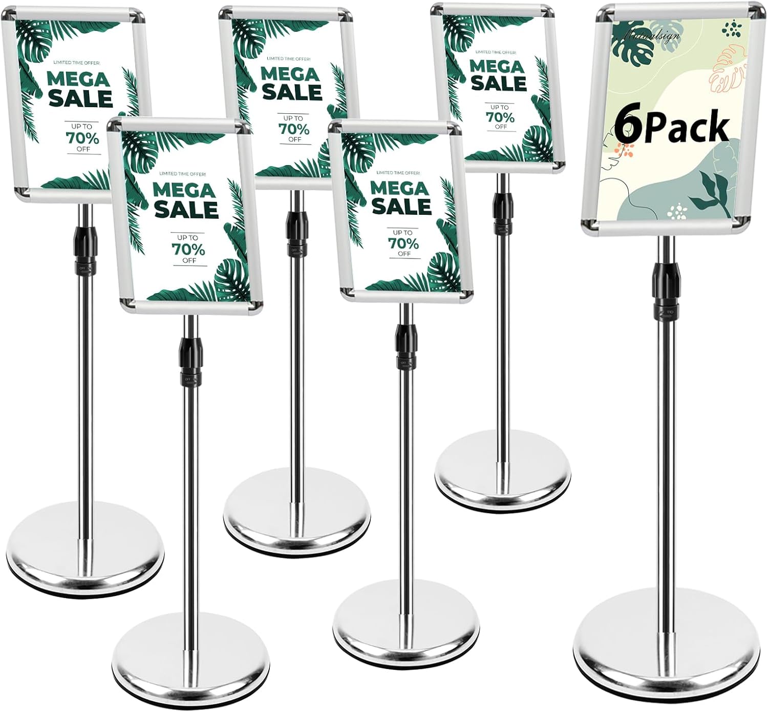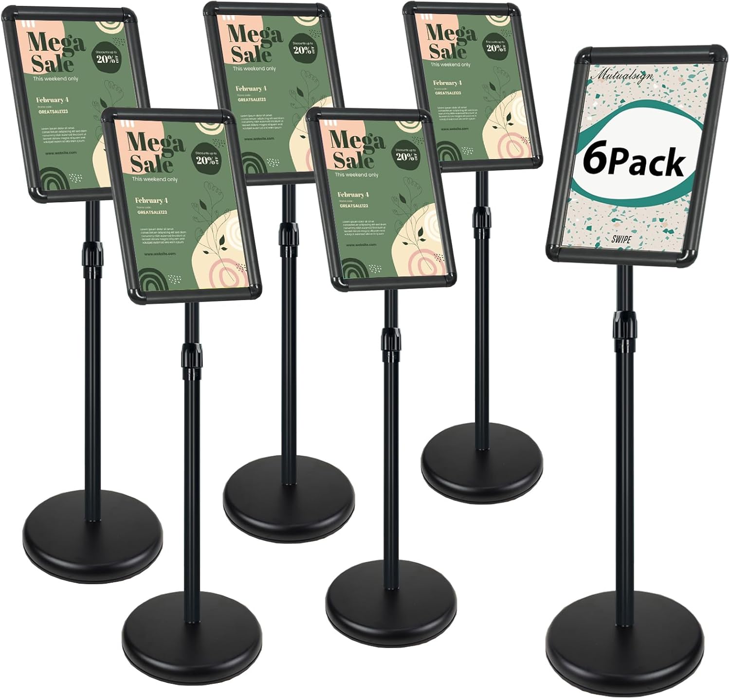 Mutualsign 6 gab. informācijas stendu komplekts, DIN A4, augstumā regulējams klientu apturētājs, āra alumīnija plakātu stends, reklāmas stends, izstādes stends ēdienkartei, kāzām, izrādei, demonstrācijai, reklāmai.