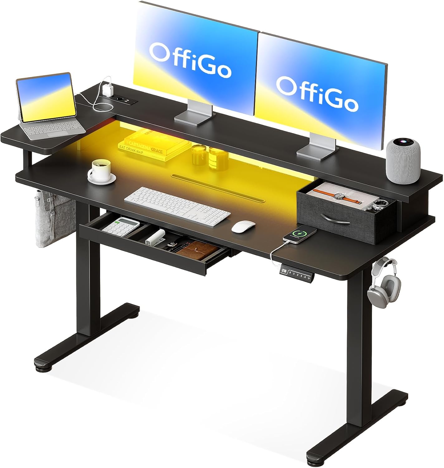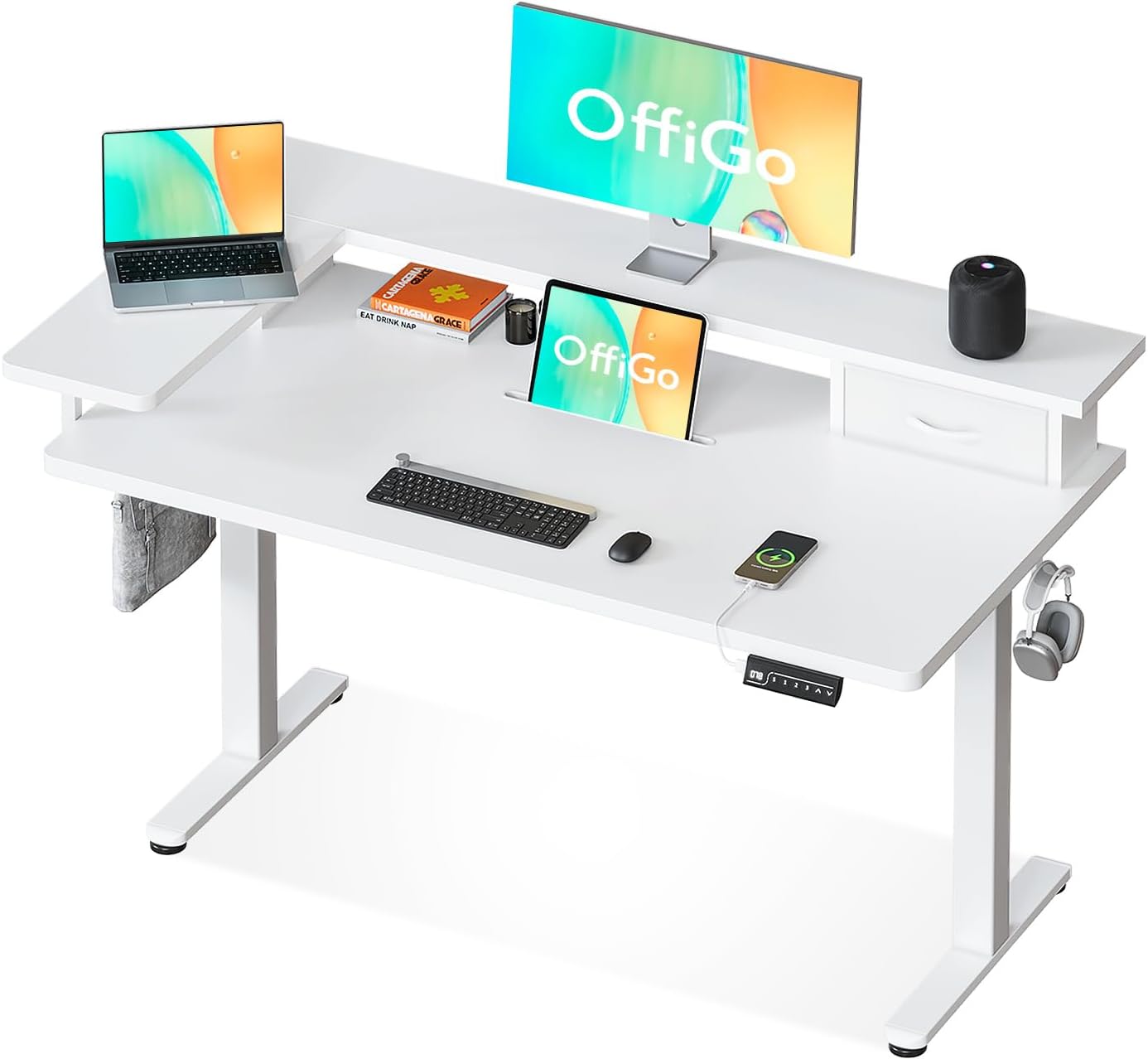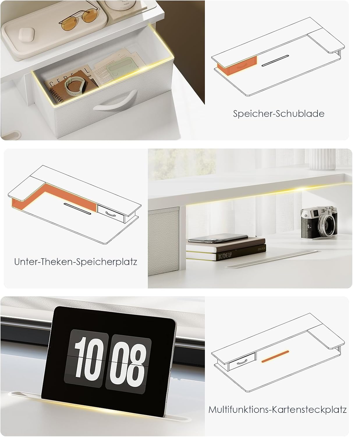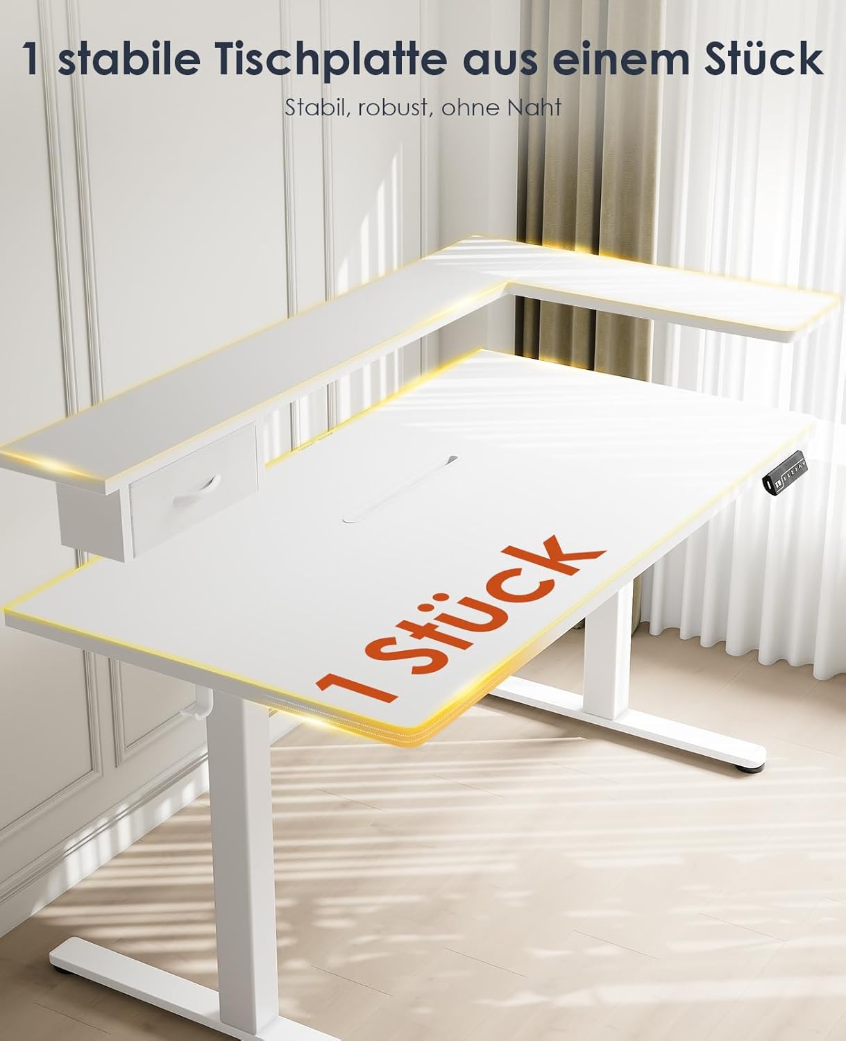 Vertikāla uzglabāšanas telpa: elektriski regulējams augstums galda līmenī ar auduma atvilktni sīkiem priekšmetiem, kas novērš jucekli uz galda un maksimāli palielina vertikālās telpas izmantošanu pārskatāmai uzglabāšanai, tādējādi izvairoties no pārpildīta galda.