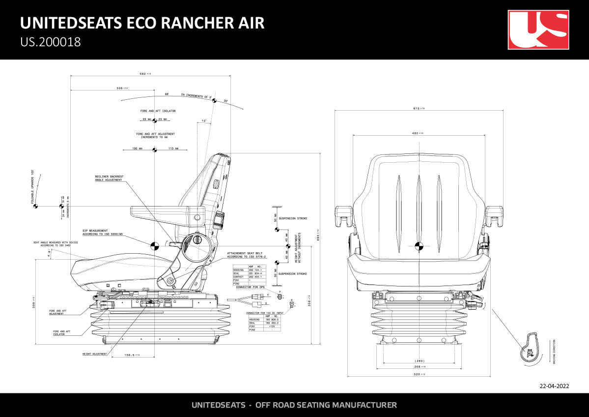 UnitedSeats Rancher Artisan gaisa piekares sēdeklis – 12V