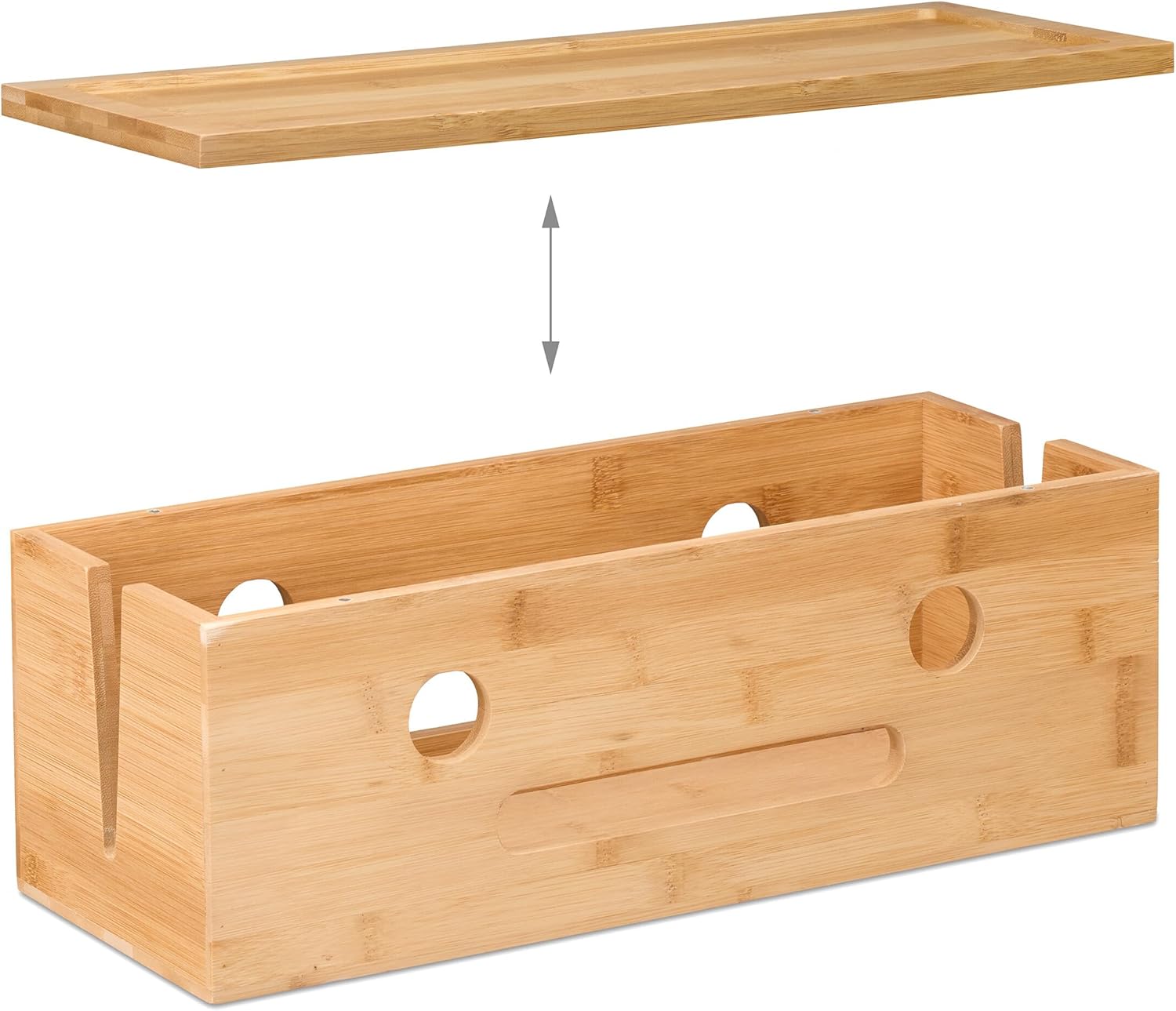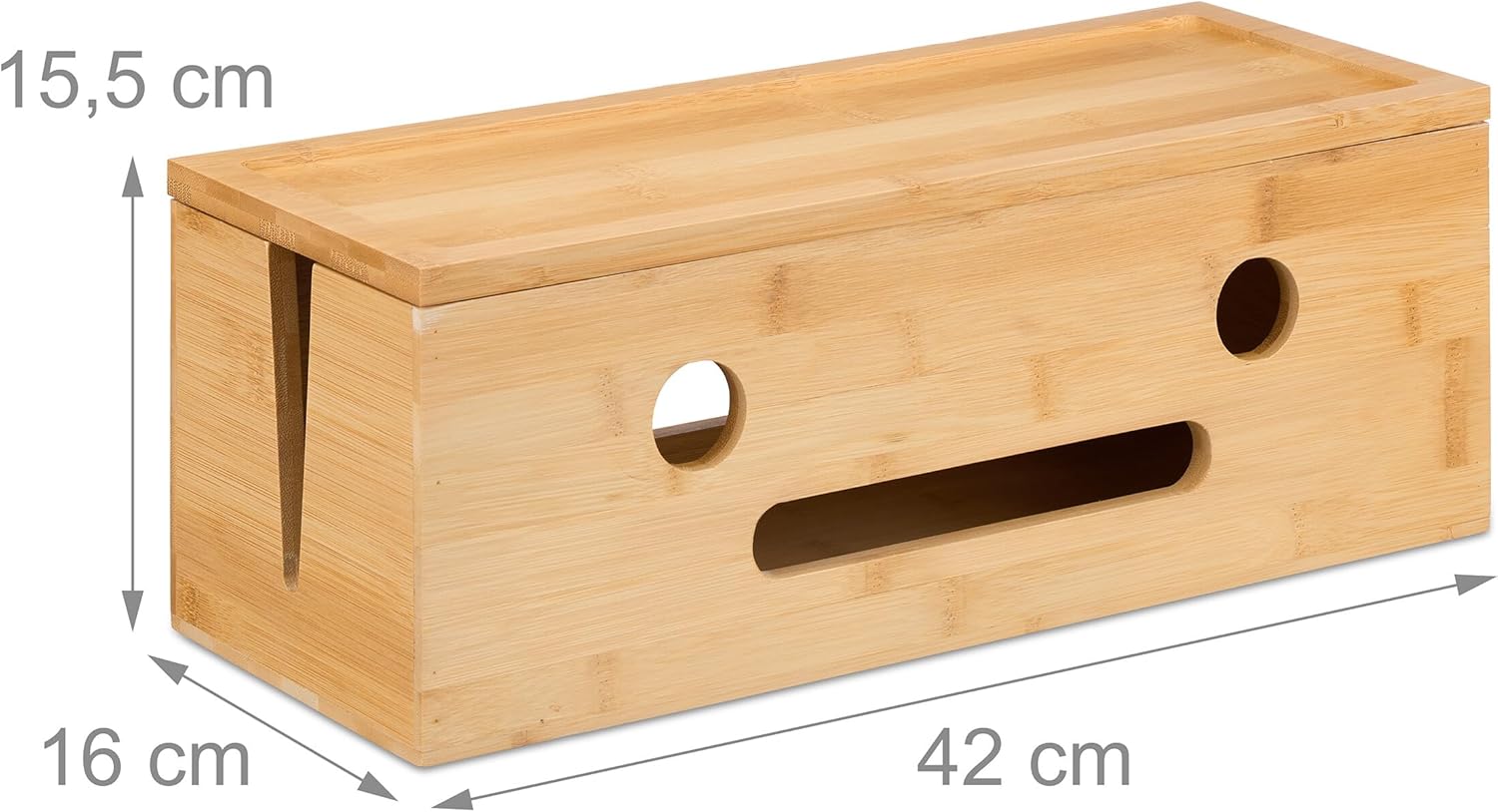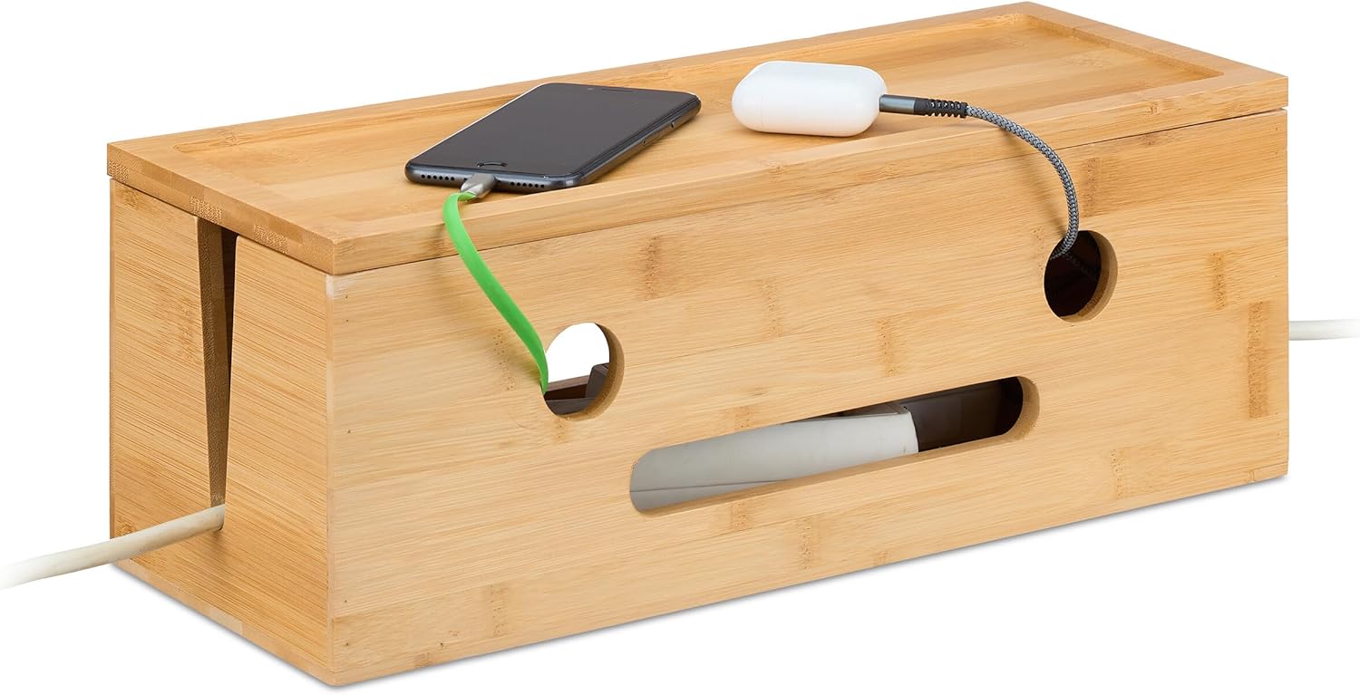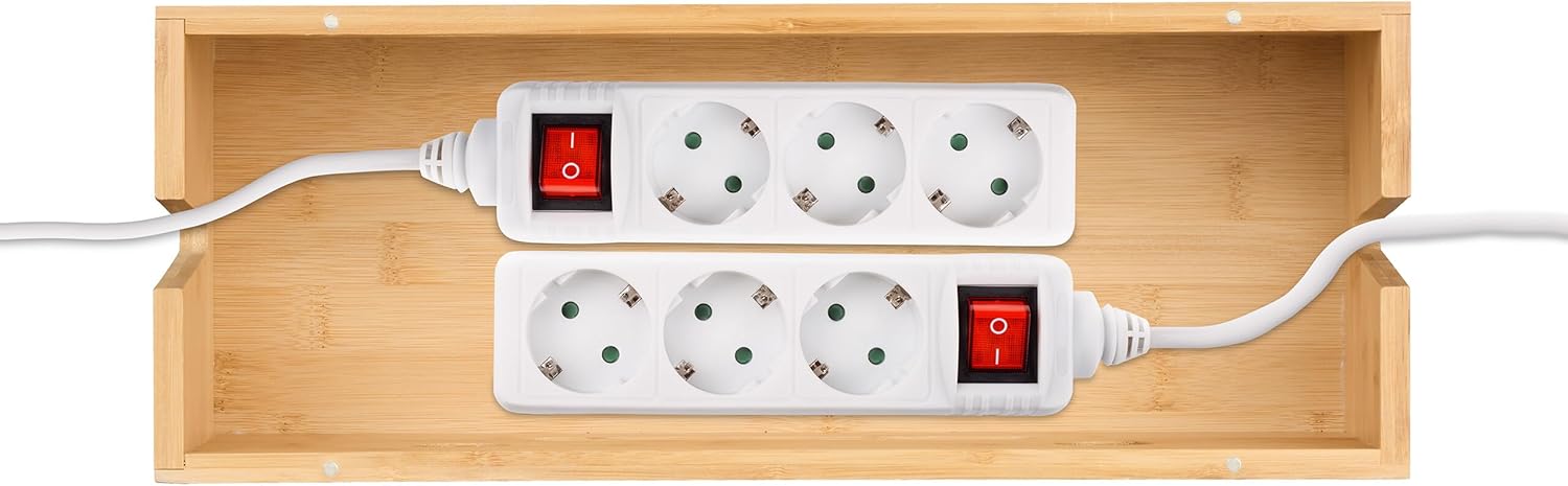 Relaxdays kabeļu kaste 2 pagarinātājiem, bambuss, augstums x platums x dziļums: 15,5 x 42 x 16 cm, slēpti kabeļi, kontaktligzdu kaste, dabīgs